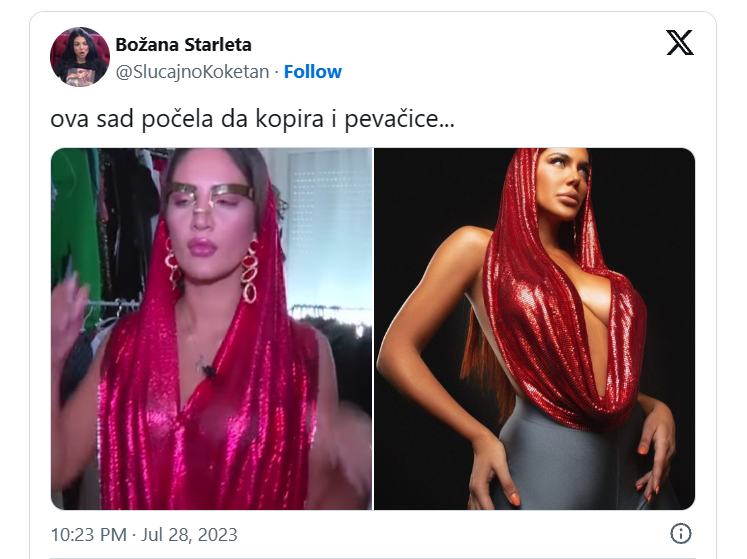 Na društvenoj mreži Tviter se pojavila objava, gde su ljudi ostali u šoku da je starleta iskopirala pevačicu.
