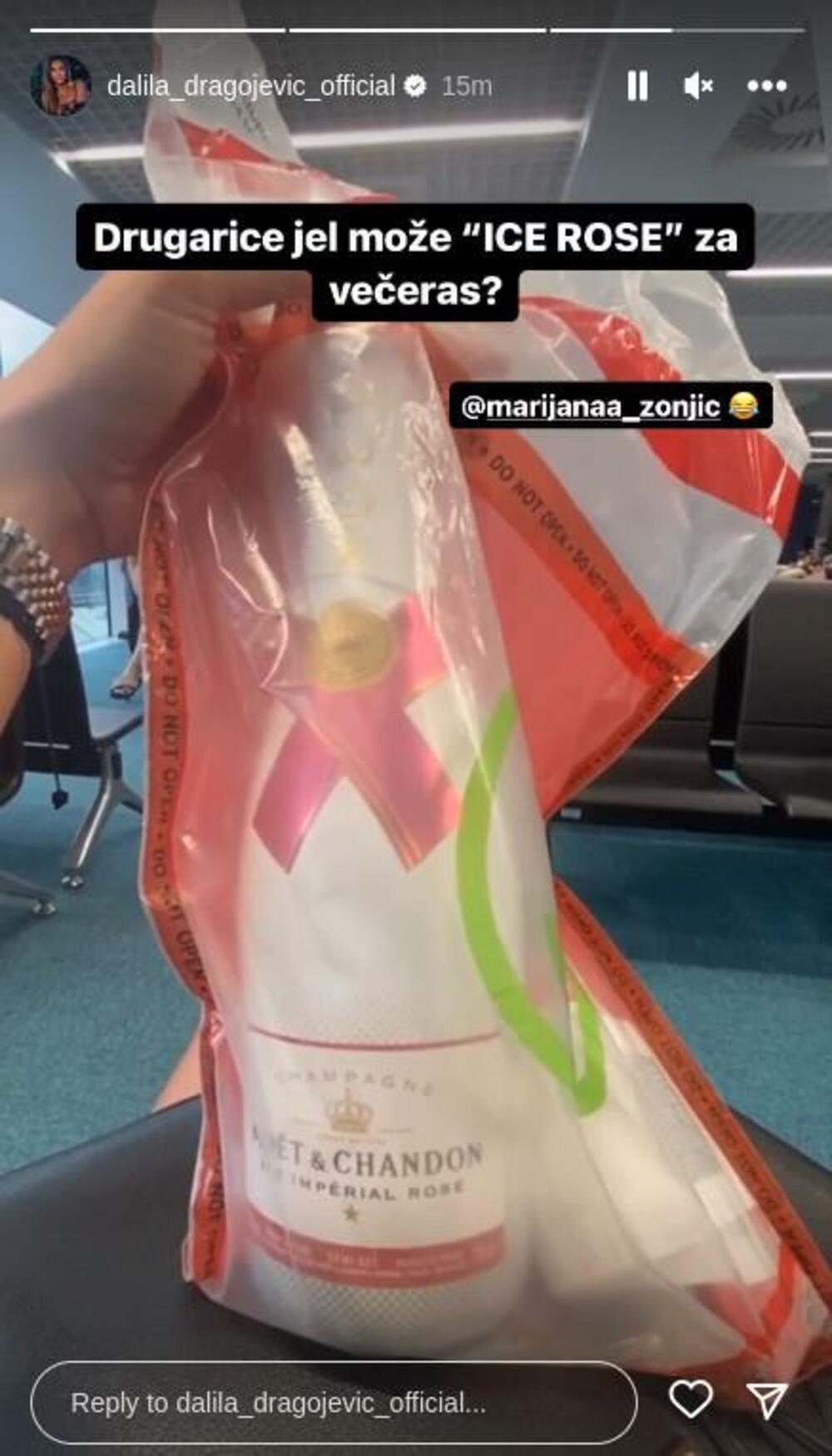Ona se na sledećem storiju obratila svojoj drugarici Marijani Zonjić. Ona je objavila uslikanu bocu luksuznog šampanjca.