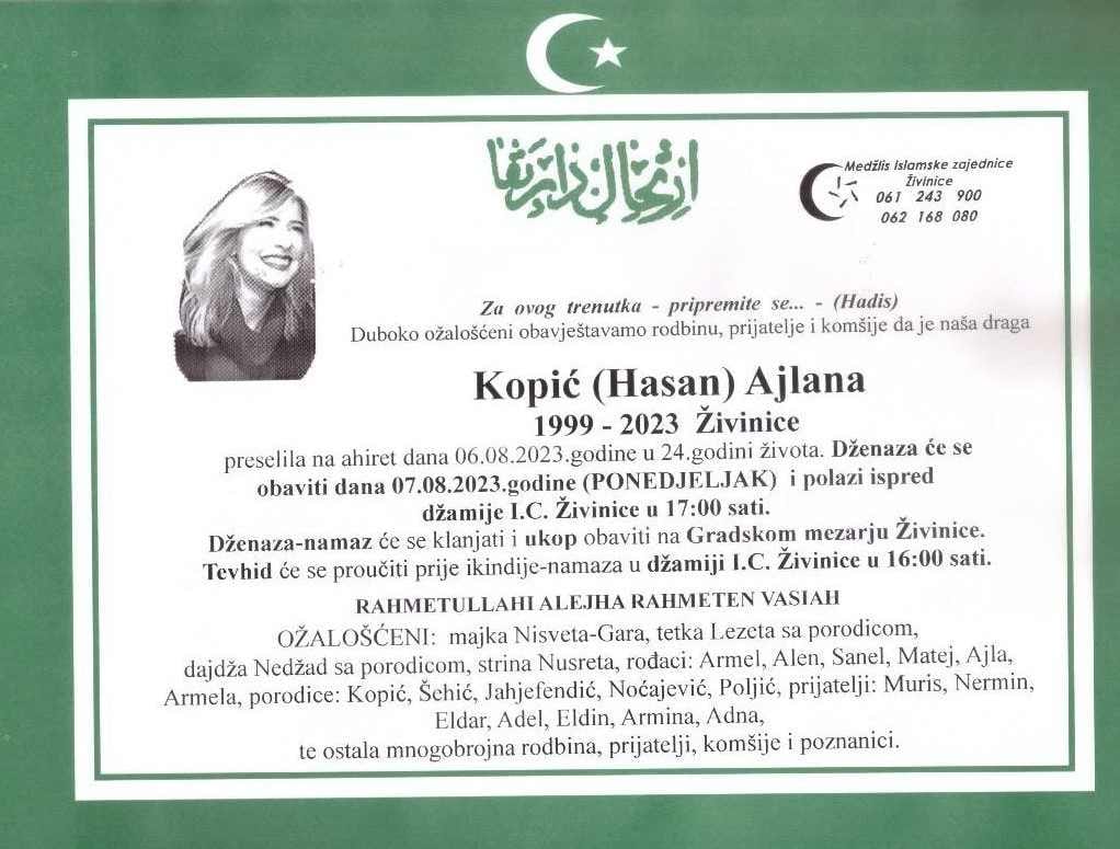 Ajlana Kopić iz Živinica se godinama unazad borila sa teškom bolešću, najvažniju životnu bitku nažalost je izgubila. Ajlana Kopić već godinama se borila sa teškom bolešću.
