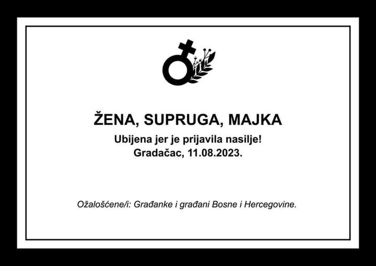 Društvenim mrežama se širi fotografija sa potresnim rečima, na kojoj se navodi: “Žena, supruga, majka. Ubijena jer je prijavila nasilje”, uz današnji datum koji je BiH zavio u crno.