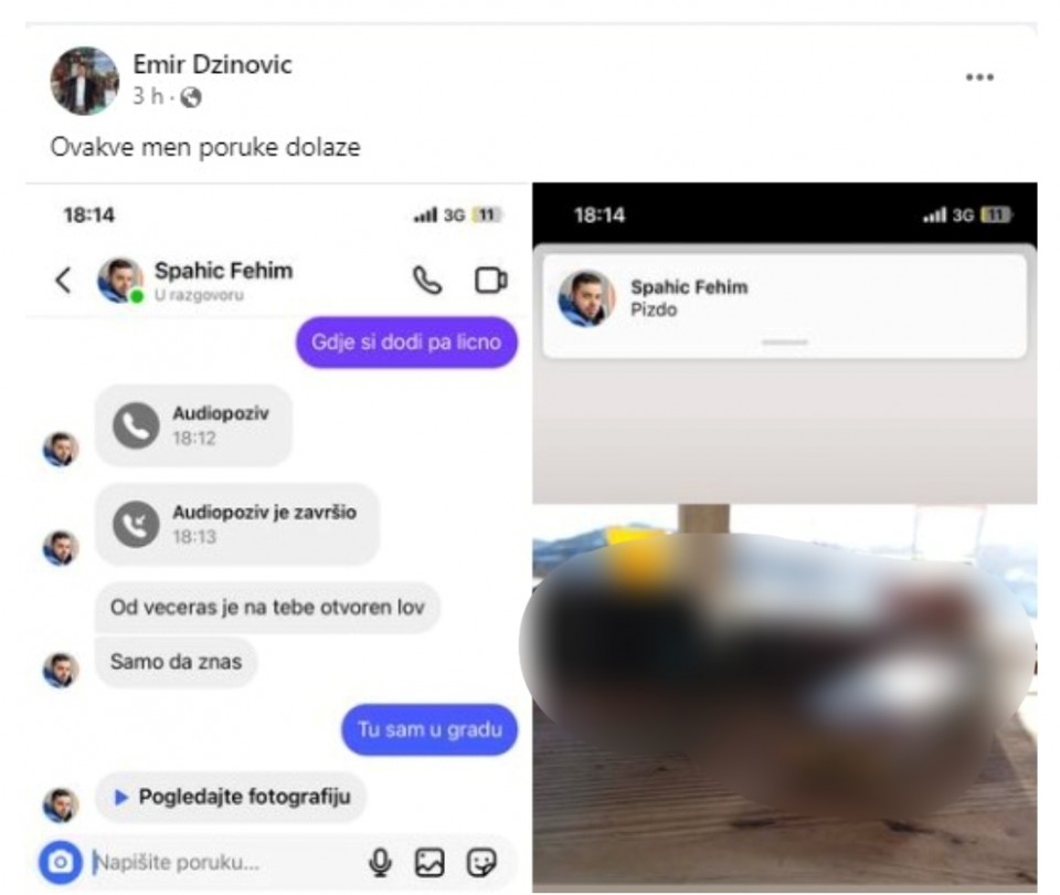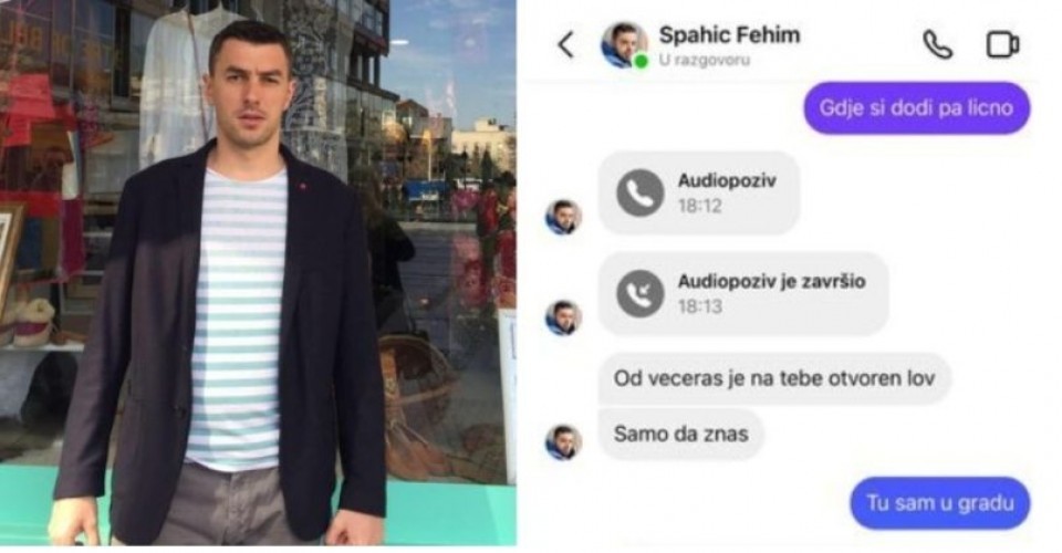 – Od večeras je na tebe otvoren lov, samo da znaš – napisao je muškarac.