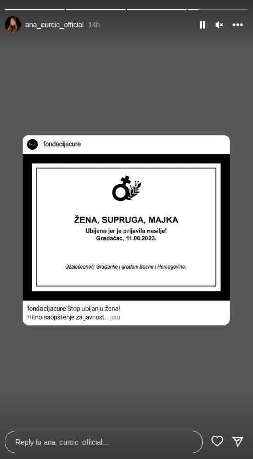 Nakon nje, saučešće je iskazala i Ana Ćurčić.