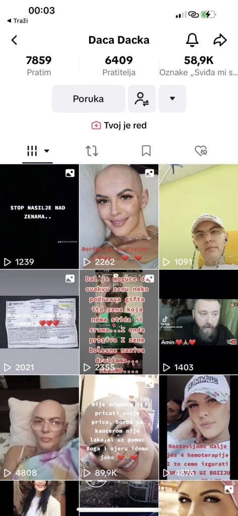 Daca, kako je Dragica poznata na TikToku, je osoba sa invaliditetom od 11. godine. Ostala je bez stopala, pretrpela fizičko nasilje, a potom je dobila tumor. Šavija je sa njom držala “lajv” i plakala dok je slušala njenu tužnu priču.