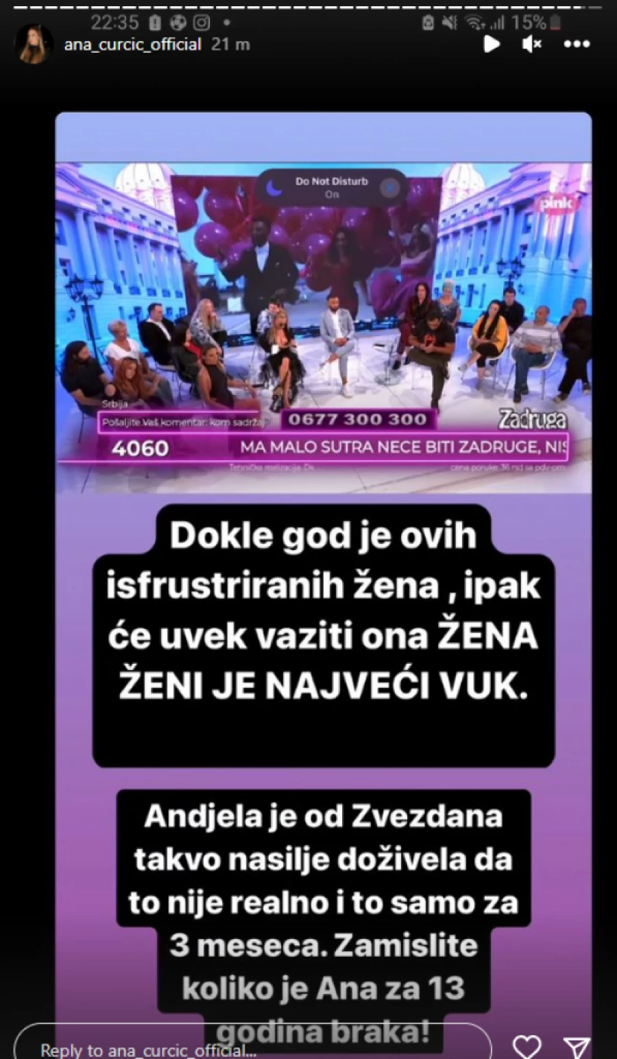 Ana Ćurčić na Instagram storiju podelila je fotografiju iz emisije