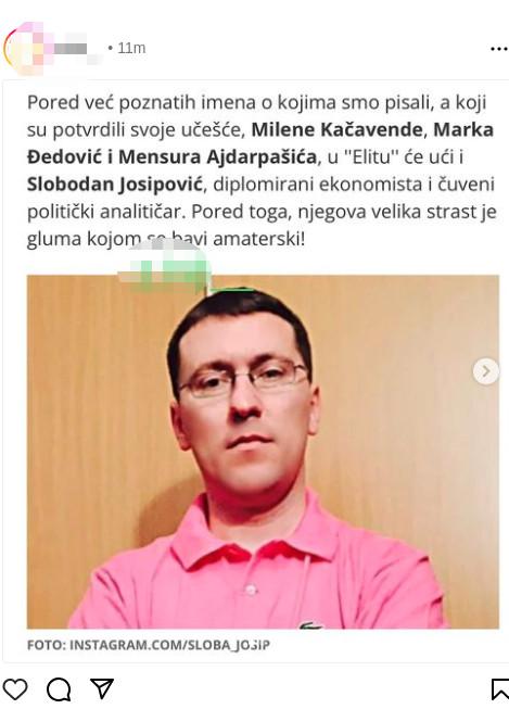 Ući će, po svemu sudeći, i Slobodan Josipović, diplomirani ekonomista i politički analitičar. Pored toga, njegova velika strast je gluma kojom se bavi amaterski. Slobodan je pre mesec dana zvanični potpisao ugovor za učešće, piše Pink.rs.