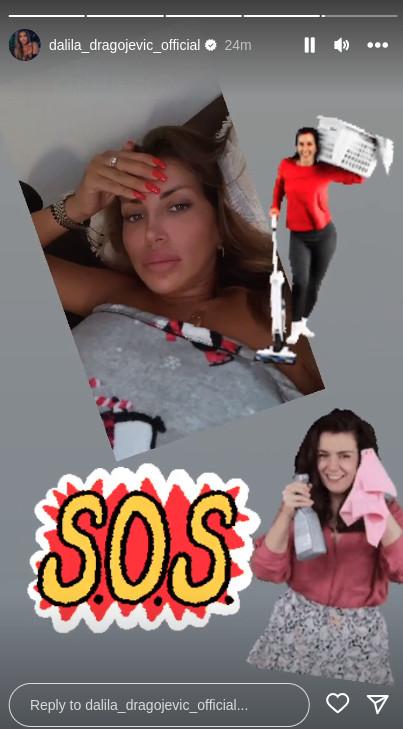 Na storiju Dalila leži na krevetu i drži šaku glavu. Ona je stavila stiker SOS koji predstavlja internacionalni poziv za pomoć.