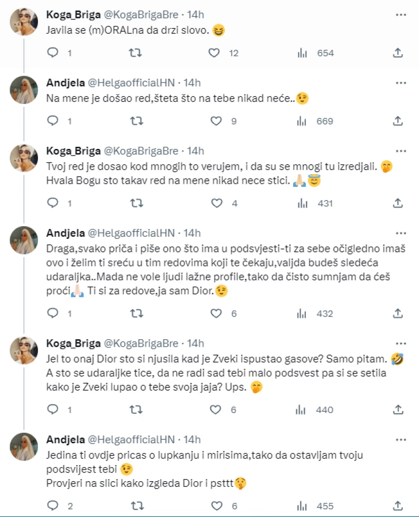 – Javila se (m)ORALna da drži slovo – poručila joj je druga korisnica.