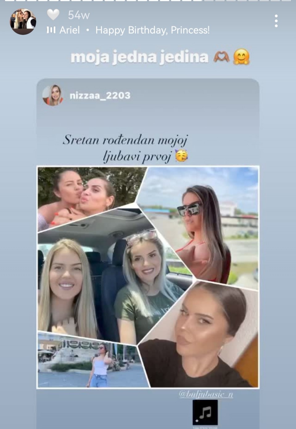 Kao dodatak ovim prelijepim sjećanjima, Nejra je podijelila stihove pjesme “Nedostaješ” Dine Merlina, i “Trag u beskraju” Olivera Dragojevića stvarajući još snažniju emotivnu vezu. Ova pjesma je postala simbol njihovih trenutaka zajedno, sada kada Nizame fizički nema među nama. Ipak, kroz ove fotografije i muziku, Nizama živi dalje u srcima onih koji su je poznavali i voljeli.