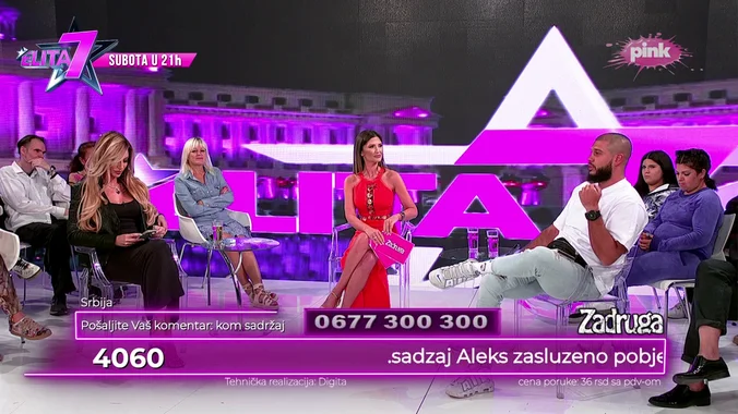 Dobro veče ovde Zorica iz Beograda. Zovem da podržim Aleksandru, ti si carica i prelepa devojka, beskrajno dobra duša. Ispratila sam i tvoju ljubav prema Filipu i ja vam želim sve najlepše u životu. Glasala sam i ponosna što si pobedila. Osoba preko puta tebe je pobedila prošle godine zahvaljujući tebi i iz sažaljenja. Zijade vidim sad si se raskokodakao, a kada si bio sa Dalilom bio si nem -rekla je gledateljka.