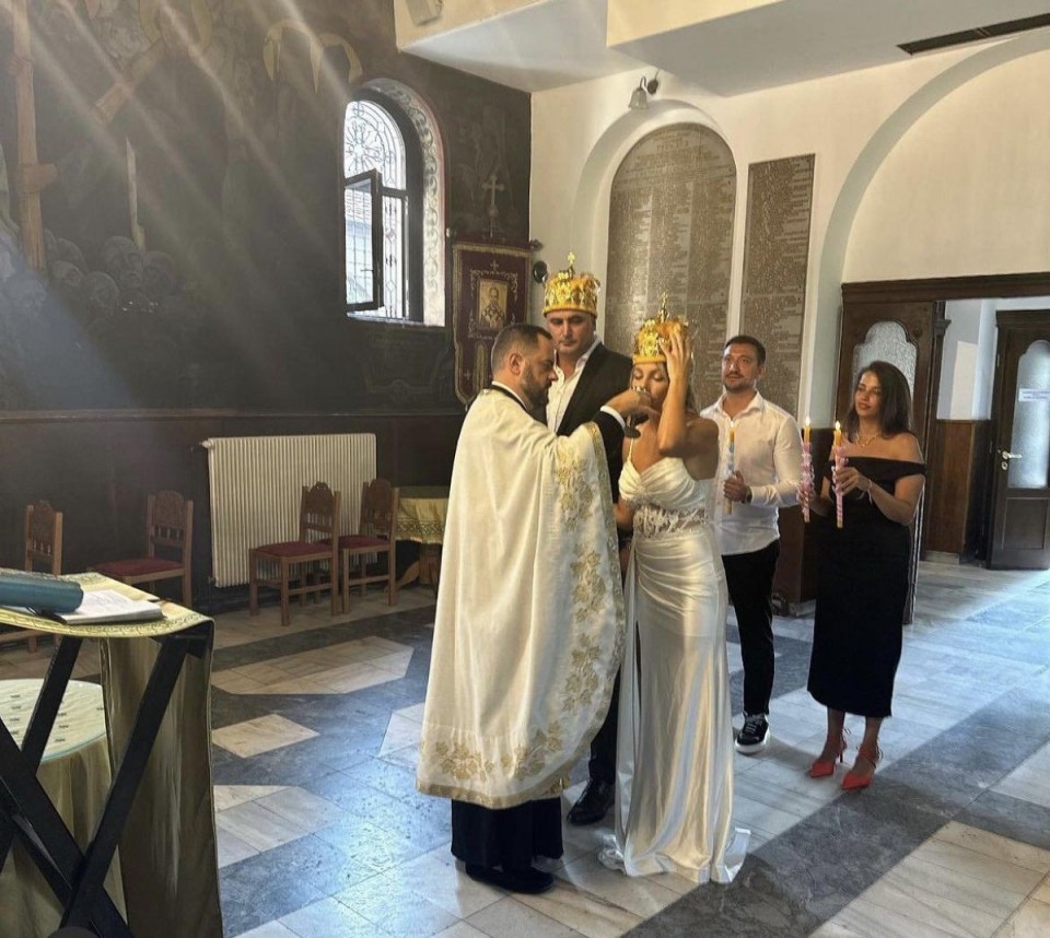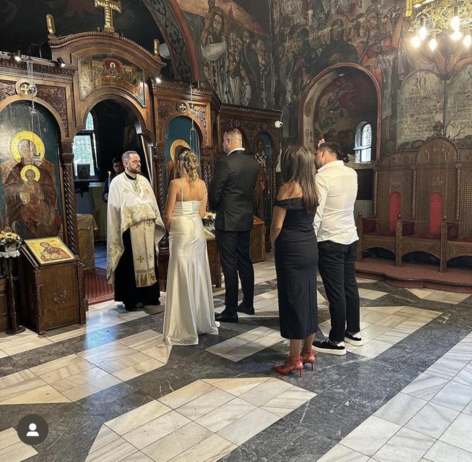 Alen se odlučio za tamno odijelo i bijelu košulju, a na fotografijama ih vidimo tokom ovog čina, dok poštuju sve pravoslavne običaje.