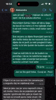 Šta misliš, zašto sam odjednom se čuo sa osobama kojima ne da nisam dao pristup nego ime nisam pominjao?! Pa, zato, jer sam bio ljut i besan da odlaziš opet i da ti je odluka abortus. Razumem ljutnju i bes, ali takvu ljagu da bacaš na mene, a ti me najbolje znaš, ti od svih mene u dušu znaš kakav sam čovek! Sve vezano za dete finansijski sam tu i ako nešto treba da me nazoveš baš za dete da mi javiš za neki pregled ili tako nešto, to bi bilo ljudski da budem upućen u sve. I kad se rodi, bilo bi okej da budem na porođaju i da se ne natežemo nego da je mogu videti, a kasnije kad poraste i uzimati kod sebe. To je to. Javi se šta god treba, čuvaj se, pozz – rekao je Car.