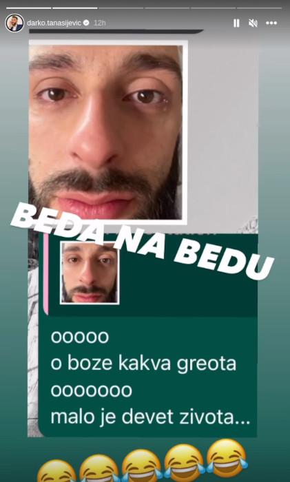 Tačnije, Darko je ove stihove prosledio nekome, pa poslao i fotografiju na kojoj plače, a sve je to završilo na Instagramu, gde je njegova virtuelna publika bila zatečena. Kome je poruka poslata, ostaje nam da se pitamo.