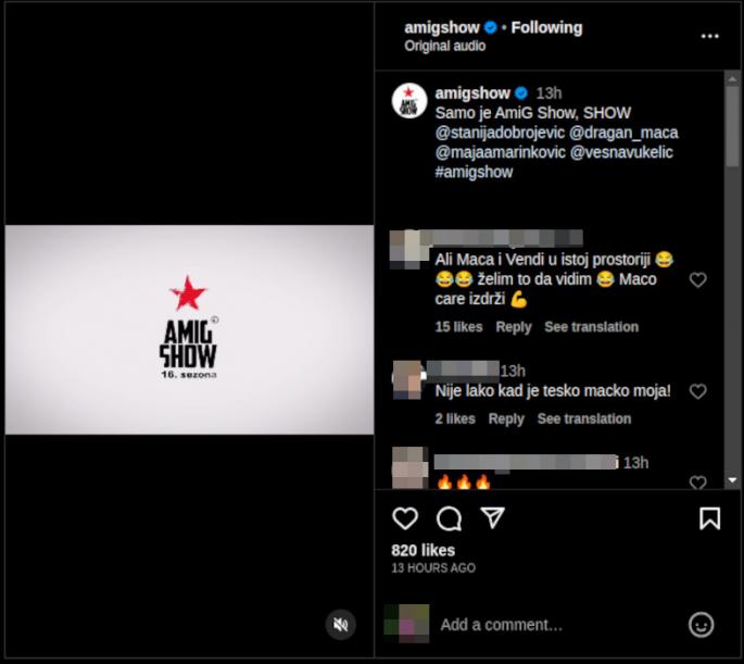 Na društvenoj mreži Instagram producenti emisije “Ami G Show” objavili su spisak gostiju za utorak, a