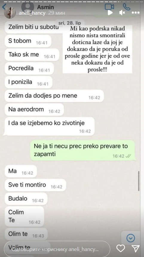 Budući da je Stanija Dobrojević izrazila sumnju da ljubavna prepiska između Asmina Durdžića i Aneli Ahmić nije od ove godine, sad je osvanuo dokaz da su sve poruke od ove godine.