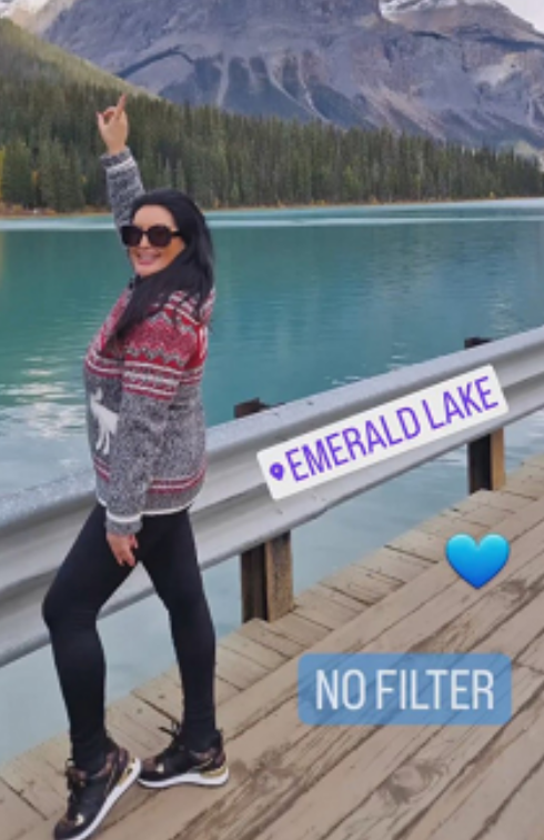 , uglavnom u crnoj boji ili nekim tamnijim nijansama. Sada je, međutim, morala da se prilagodi vremenskim uslovima. Ovaj kežual stajling bio je savršen za uživanje u divnoj kanadskoj prirodi.