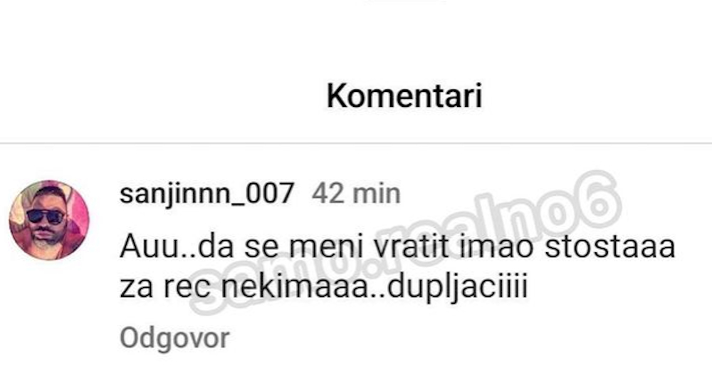Ipak to se nije dopalo mnogim gledaocima koji us ispod objave pisali negativne poruke “Je**ga Cobi, imao si priliku…nije to za tebe. Samo si kukao tamo, dosadio i bogu i narodu”, “Da ti se vratiti hahaha a što li grebao i rukama i nogama da izađe. Baš će tebe vratiti ko bitan mnogo”, “Eno Mitrović poslao avion po njega, prostiru crveni tepih” – samo su neki od komentara