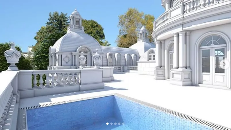 Navodno će na sunčanoj strani dvorišta biti smešten bazen, a vilu će krasiti i visoki plafoni i dosta svetla. U sklopu dvorca je i spa centar i teretana kao i sala sa projektorom nalik bioskopskim.