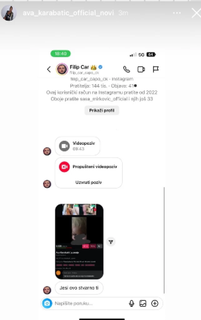 Društvenim mrežama sada kruži njegova prepiska sa Avom Karabatić, odnosno, Filip je sve vreme pokušavao da ostvari komunikaciju sa njom, pa ju je zvao i pisao poruke, a Ava je sve to obelodanila, kako bi objasnila da snimak zapravo nije njen: