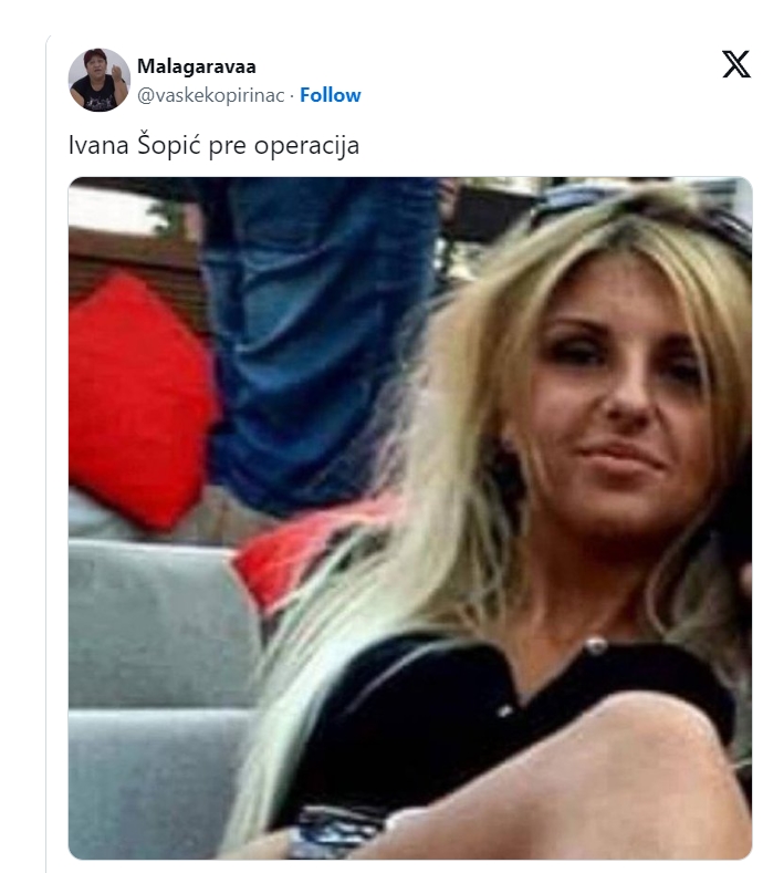 – Svi ličimo jedni na druge. Imam taj neki prirodno tužan pogled i onda…pogotovo još deset meseci tamo – obrazložila je tada, preneli su domaći mediji, dok je nedavno Milošević indirektno poručio kako mu Ivana Šopić u životu ne treba.