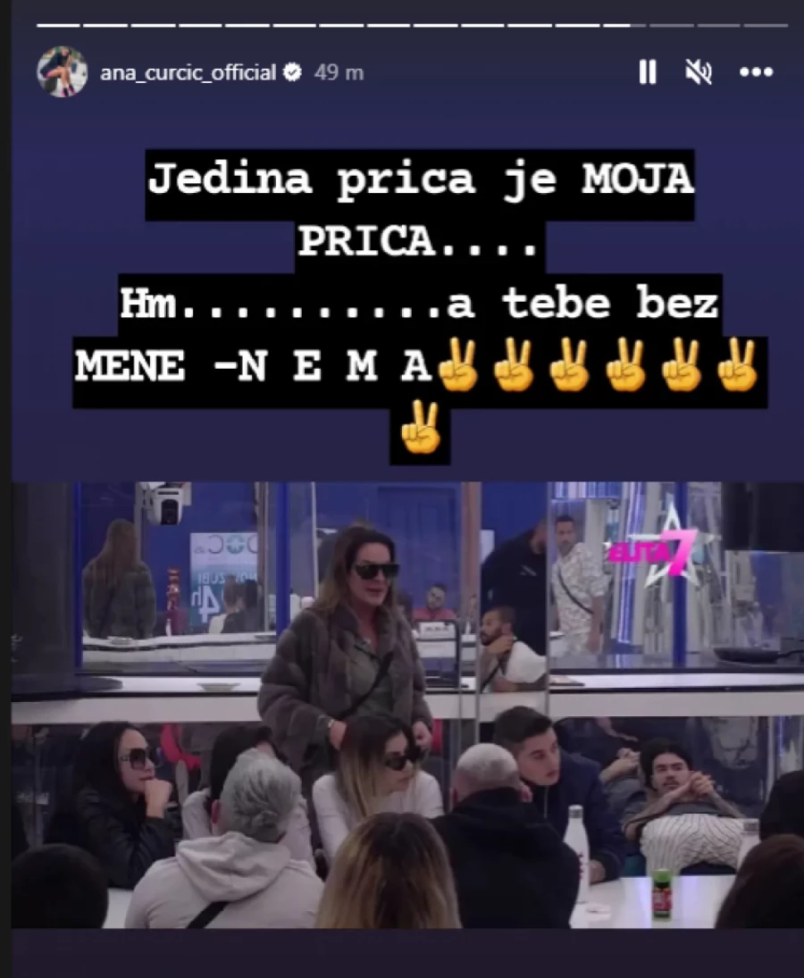 – Jedina priča je moja priča! Hm… A tebe, bez mene – nema – napisala je Ana Ćurčić na Instagramu.