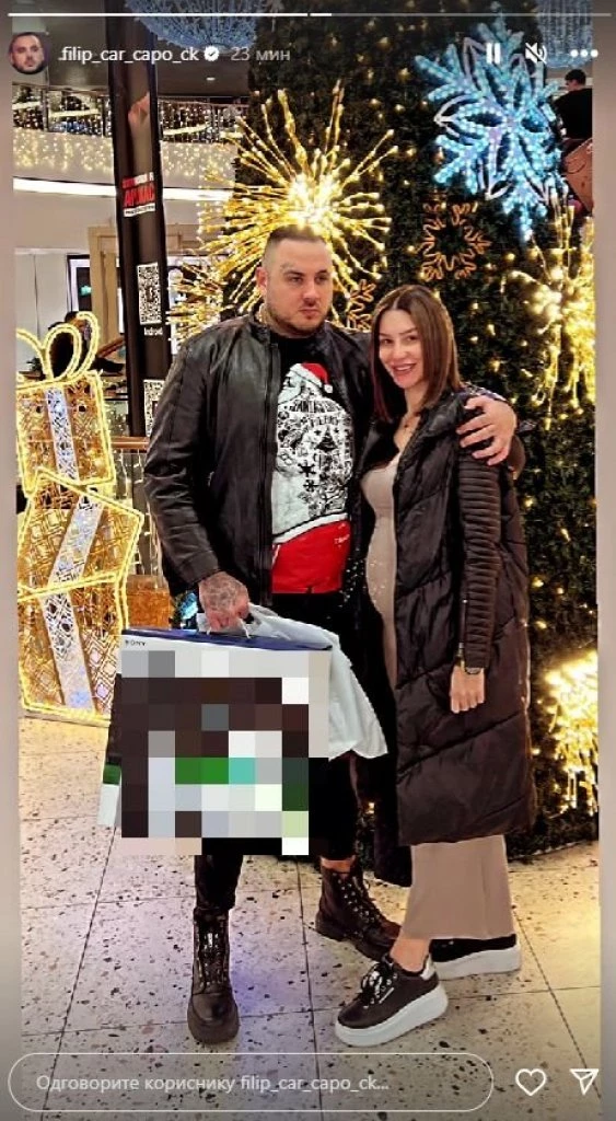 Naime, Aleks i Car su otišli zajedno u kupovinu, kupili novu konzolu za igrice, te kao srećan par pozirali ispred novogodišnje jelke, ali to nije stvar koja je privukla najviše pažnje. Nikolićeva je nosila haljinu, koja nije mogla da sakrije njen trudnički stomak i sada se jasno vidi koliko je beba napredovala.