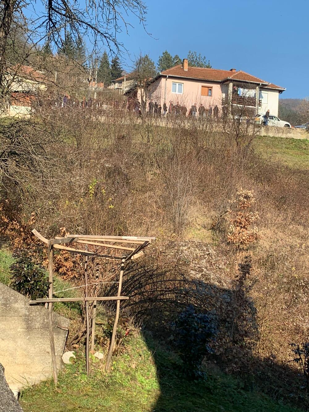 Bivši košarkas se u jednom trenutku van sebe od bola naslonio na kuću. Povorka je krenula, srednji brat Boris nosi krst dok je Janjuš taj koji će do groblja poneti Mihailovu fotografiju.