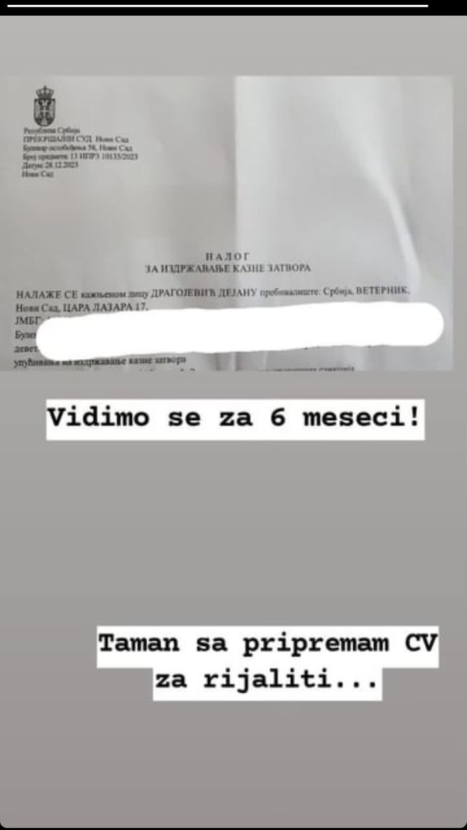 Naime, Dejan je uslikao nalog za izdržavanje kazne zatora koji je dobio, ali nije otkrio zbog čega!