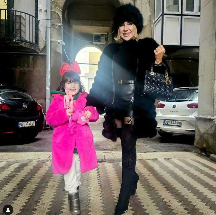 Majka i kćerka su pozirala zajedno i zimskim kompletima – mala Lea je imala roze odjevnu kombinaciju na sebi, a u ruci je držala barbiku, dok je Jeremićeva bila sva u crnom.