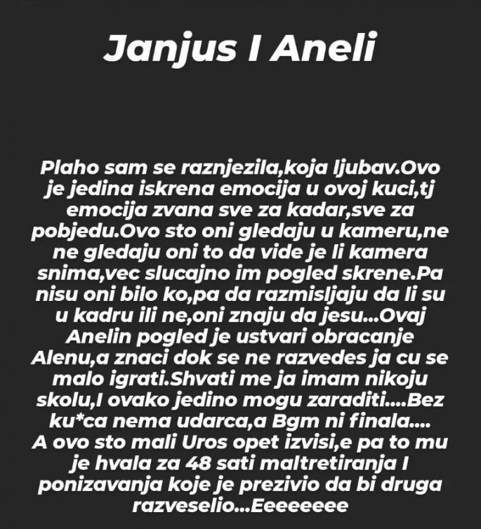 Janjuš je, sudeći po komentarima, zgrozio čitavu naciju kad je pred svima noćas imao odnose sa Aneli Ahmić, a ni 40 dana nije prošlo od sahrane Mihaila Janjuševića, njegovog rođenog brata. Dok mu žena i ćerka sede kući u bolu zbog porodične tragedije, on bludniči sa ljubavnicom.