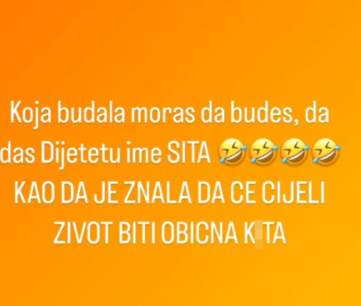 – Koja budala moraš da budeš, da daš detetu ime “Sita”, kao da je znala da će celi život biti obična ki*a – napisao je Asmin uz smajlije koji se smeju.