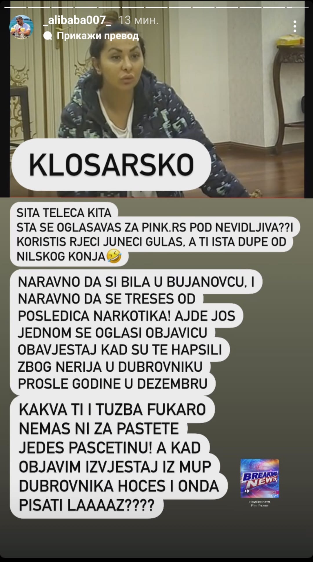 Navodno, on ima dokaze da je ona bila u Bujanovcu te da je hapšena u Dubrovniku zbog na.kotika.