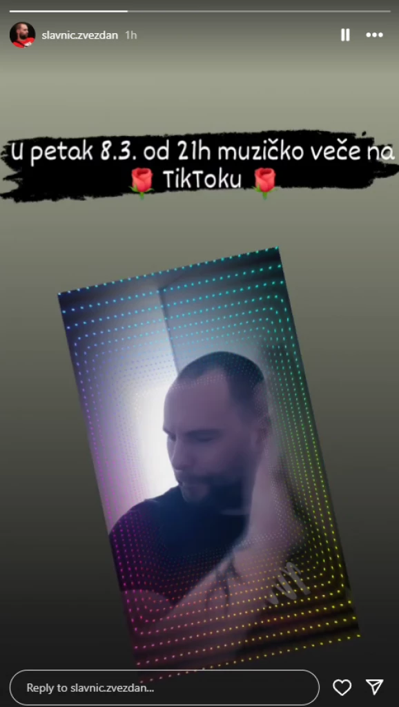 U petak, 08.03. od 21h muzičko veče na TikToku – najavio je Zvezdan Slavnić.