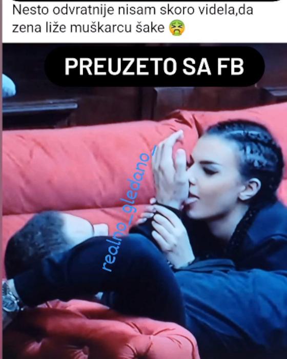 Naime, na jednoj fan grupi koja detaljno prati dešavanja u rijalitiju osvanula je slika koja je, malo je reći, potpuno zgrozila javnost. Na fotografiji se vidi kako Anđelo i Anita provode vreme zajedno, što je za ovaj mladi par sasvim normalno i poželjno. Međutim, situacija u kojoj je kamera “Elite” zabeležila prilićno je nesvakidašnja – Anita liže Anđelov dlan.