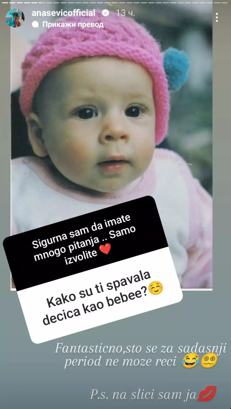Za to vreme, svojim pratiocima na Instagramu rekla je da joj postavljaju pitanja, na koja im je davala odgovore, ali uz odgovore imali su priliku da vide i neke fotografije, a jedna stara fotografija Ane Sević naročito je sve oduševila.