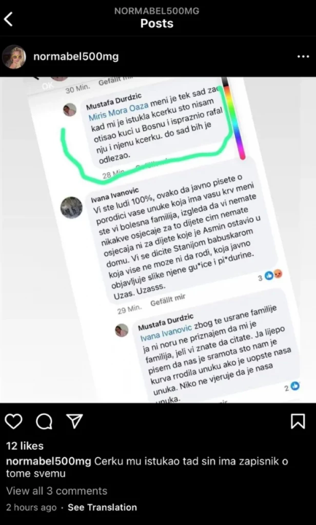 – Zbog te us*ane familije ja ni Noru ne priznajem da mi je familija, je l’ vi znate da čitate? Ja lepo pišem da nas je sramota što nam je kurva rodila unuku, ako je uopšte naša unuka. Niko ne veruje da je naša unuka – poručio je on.