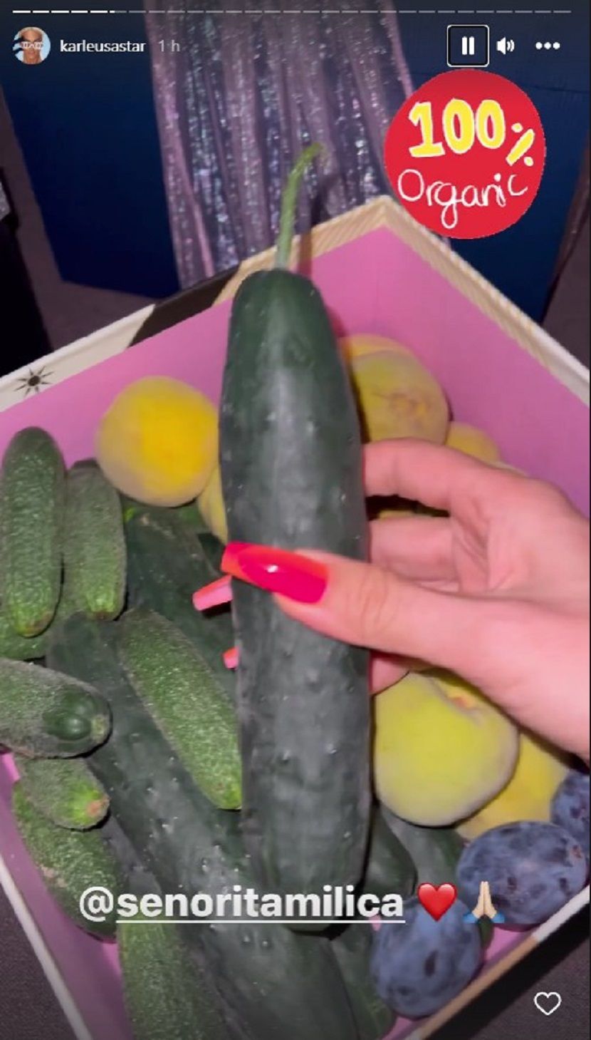 Jelena je tada otvorila kutiju punu krastavaca, breskvi, šljiva, jabuka i kruški, naravno, sve je organsko i neprskano.