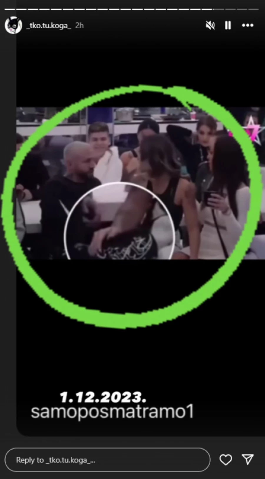 Reper i Aneli su tokom emisije sedeli jedno pored drugog, iako je u tom periodu već bio u emotivnom odnosu sa Jovanovićevom. Aneli ga je dodirivala po nozi, a osmesi su bili obostrani, što je primetila i Miona.