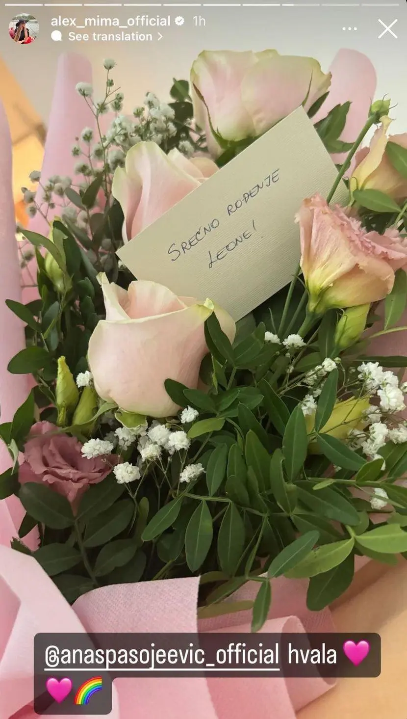 Anđela je novopečenoj mami donela predivan, roze buket, a cveće je stiglo i od bivše zadrugarke Ane Spasojević uz poruku “Srećno rođenje Leone!”.
