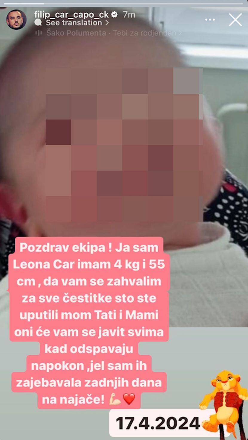 Sve je u redu. Filip se zaljubio u bebu, kao i ja. Tek sada sam osetila tu pravu ljubav i emociju – rekla je Aleksandra i otkrila da mala Leona liči na tatu.