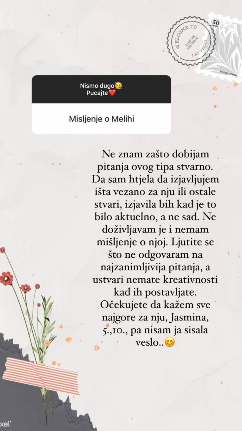 Naravno, javnost je najviše zanimao njen odnos sa Melihom Imširović, pa su se tako izdvojila pitanja: