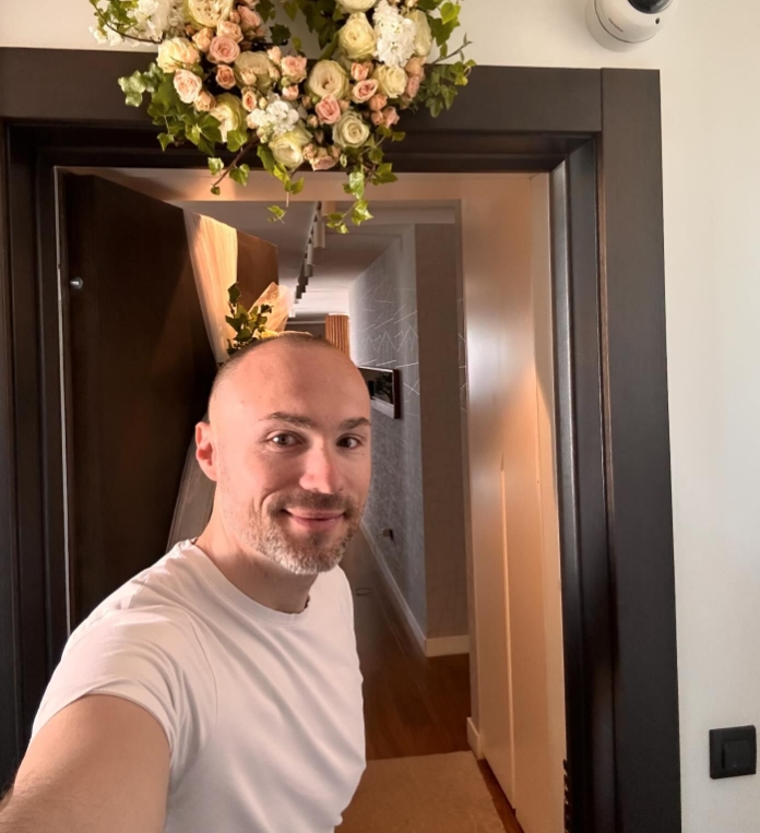 Naime, iznad vrata njegovog stana, osvanuo je mladenački venac ukrašen cvećem.