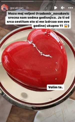 – Mužu moj voljeni, srećna nam sedma godišnjica. Ja ti od srca čestitam što si me izdržao sve ove godine (ukupno 11). Volim te – poručila je Goca putem društvenih mreža.