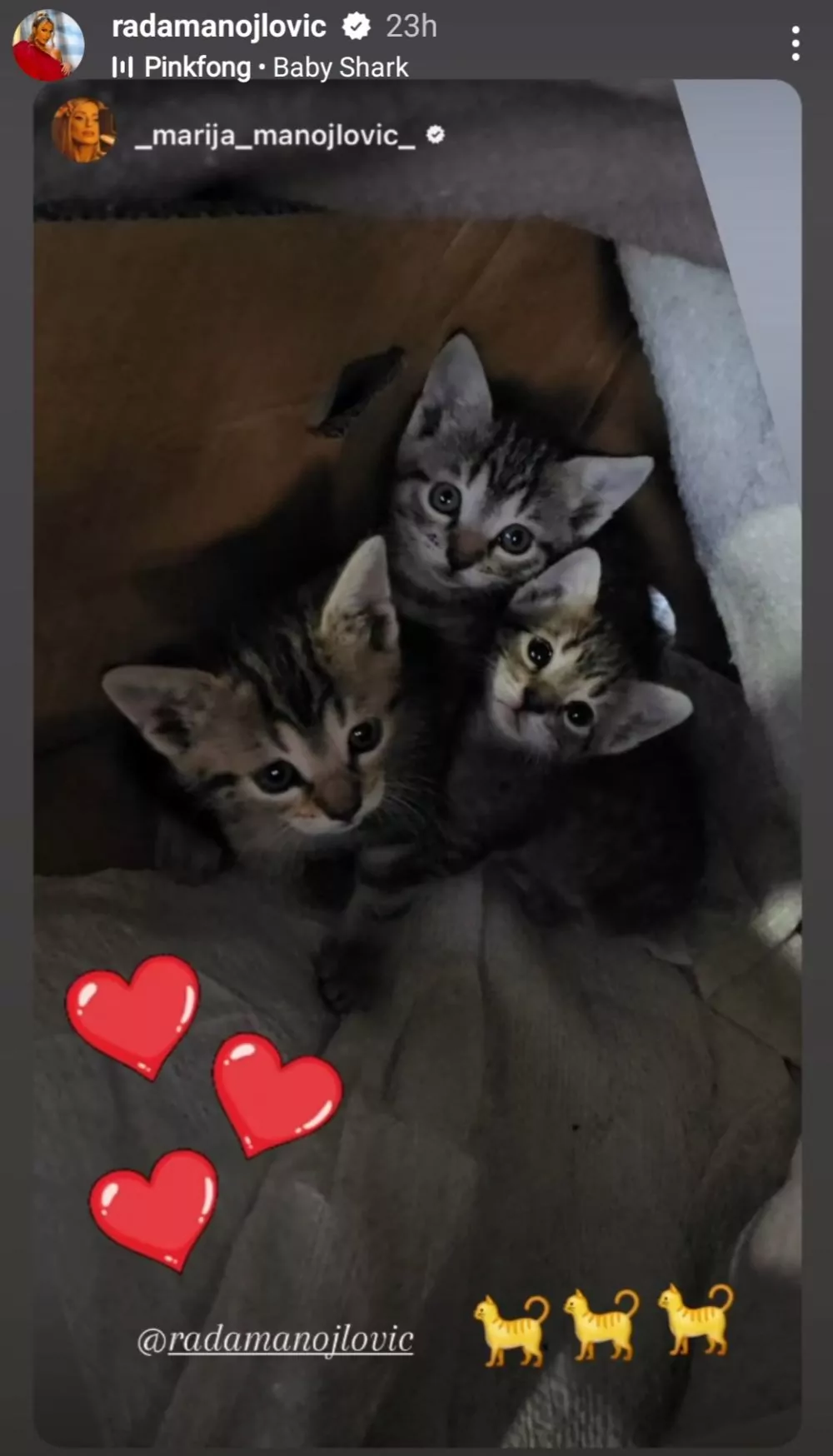 Naime, objava Rade Manojlović pravi je pokazatelj koliki je ona zapravo ljubitelj životinja o čemu je u više navrata i govorila, pa je fotka tri preslatke bebe, malenih mačića raznežila armiju ljudi koji je prate.
