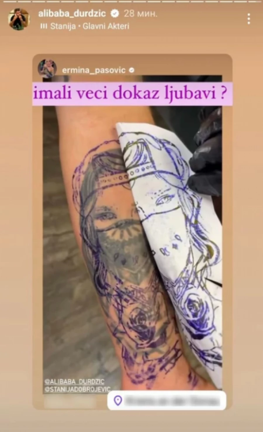 Naime, on je pre nekoliko dana istetovirao lik devojke, koja je mnoge podsetila na Staniju Dobrojević.