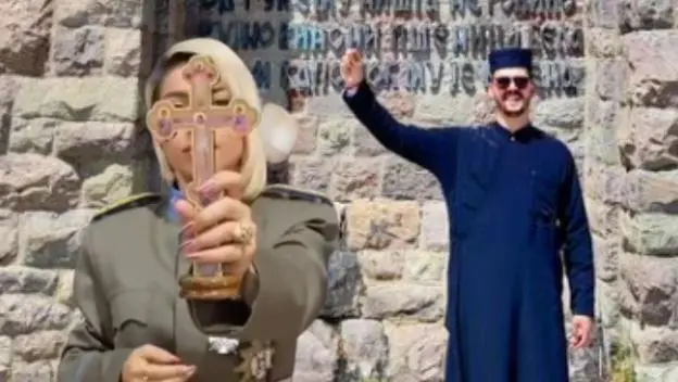 Svešteniku je zasmetalo što Jovana u svojoj ruci drži pravoslavni krst i svojim postupkom ismejava jednu od najvećih hrišćanskih svetinja i simbola.