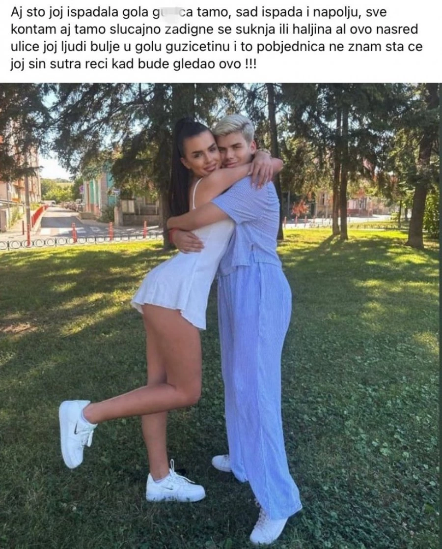 – Aj što joj ispadala gola pozadina tamo, sad ispada i napolju, sve kontam aj tamo slučajno, zadigne se suknja ili haljina ali ovo nasred ulice joj ljudi bulje u golu pozadinu i to pobednica! Ne znam šta će joj sin sutra reći kad bude gledao ovo – stajalo je u opisu.