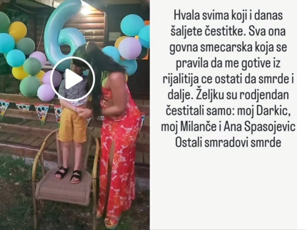 Njena objava iz dvorišta porodične kuće je bila puna emocija, a Miksi je pokazala svojoim pratiocima najdirljivije trenutke sreće sa porodicom i prijateljima. Miljana je sve to upotpunila snimcima koji prikazuju smeh, igru i zajedničke trenutke sa Željkom.