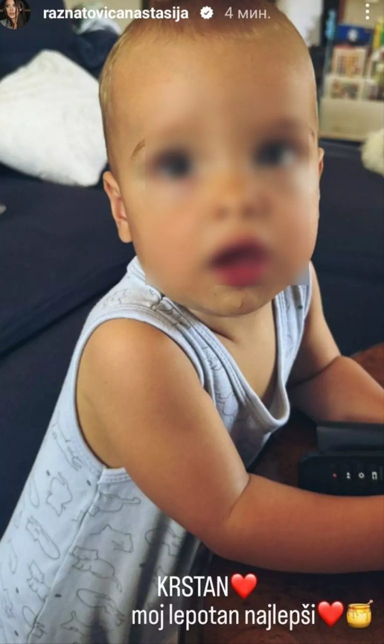 Naime, Anastasija je na svom Instagram profilu objavila fotografiju svog bratanca uz emotikon srca i meda i reči: “Krstan, moj lepotan najlepši”.