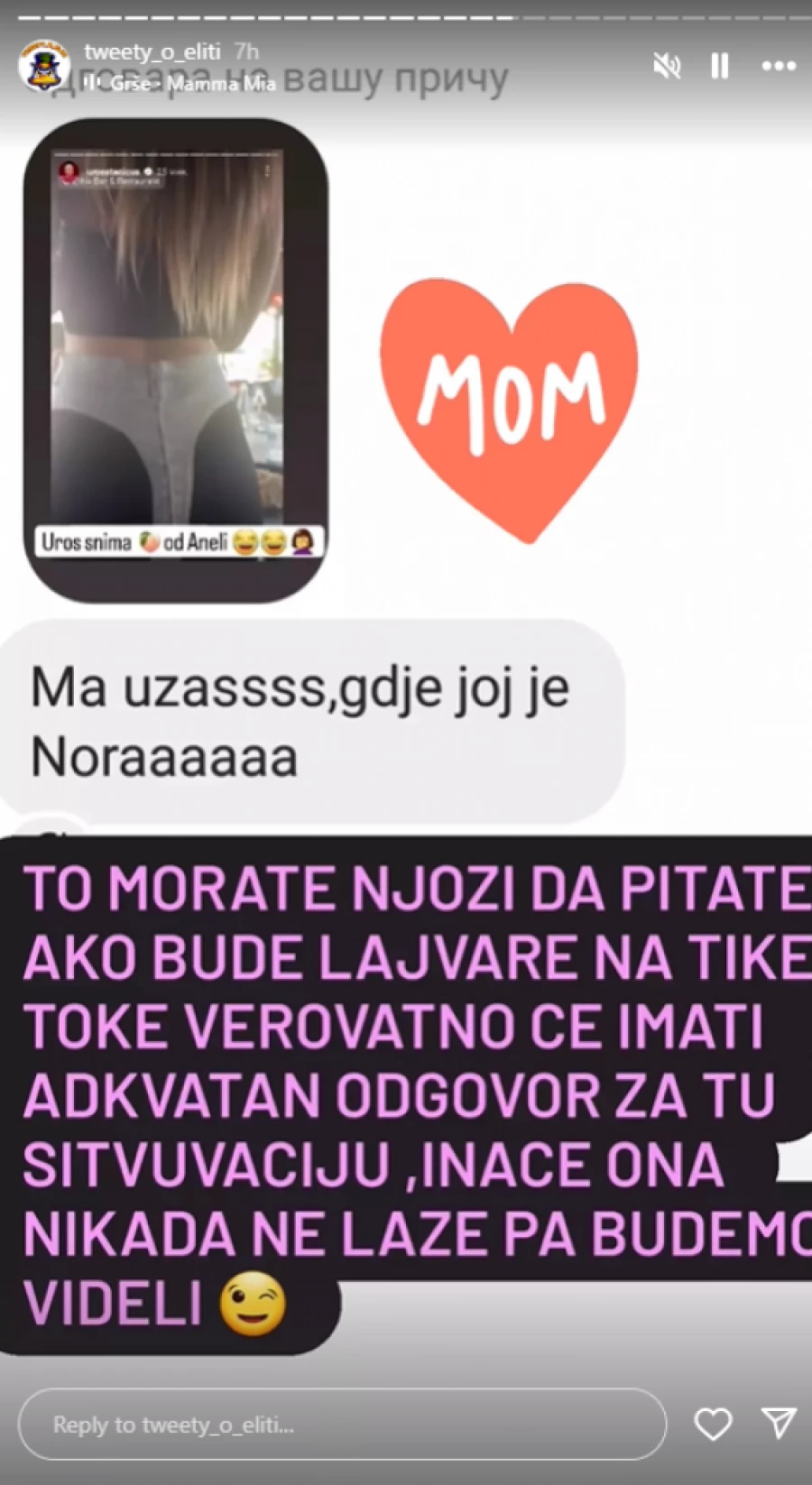 – Uroš snima zadnjicu Aneli Ahmić. Užas, gde joj je Nora – glasilo je pitanje koje je izazvalo lavinu komentara.
