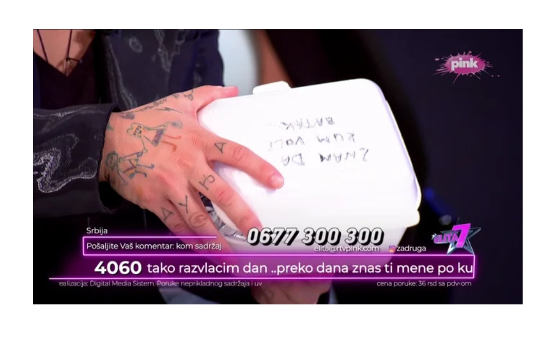 U studio tokom emisije ”Narod pita” stigao je poklon, koji je voditelj Darko Tanasijević uručio Jovani Tomić Matoroj, kako bi prolitala posvetu i otkrila kome je namenjen.